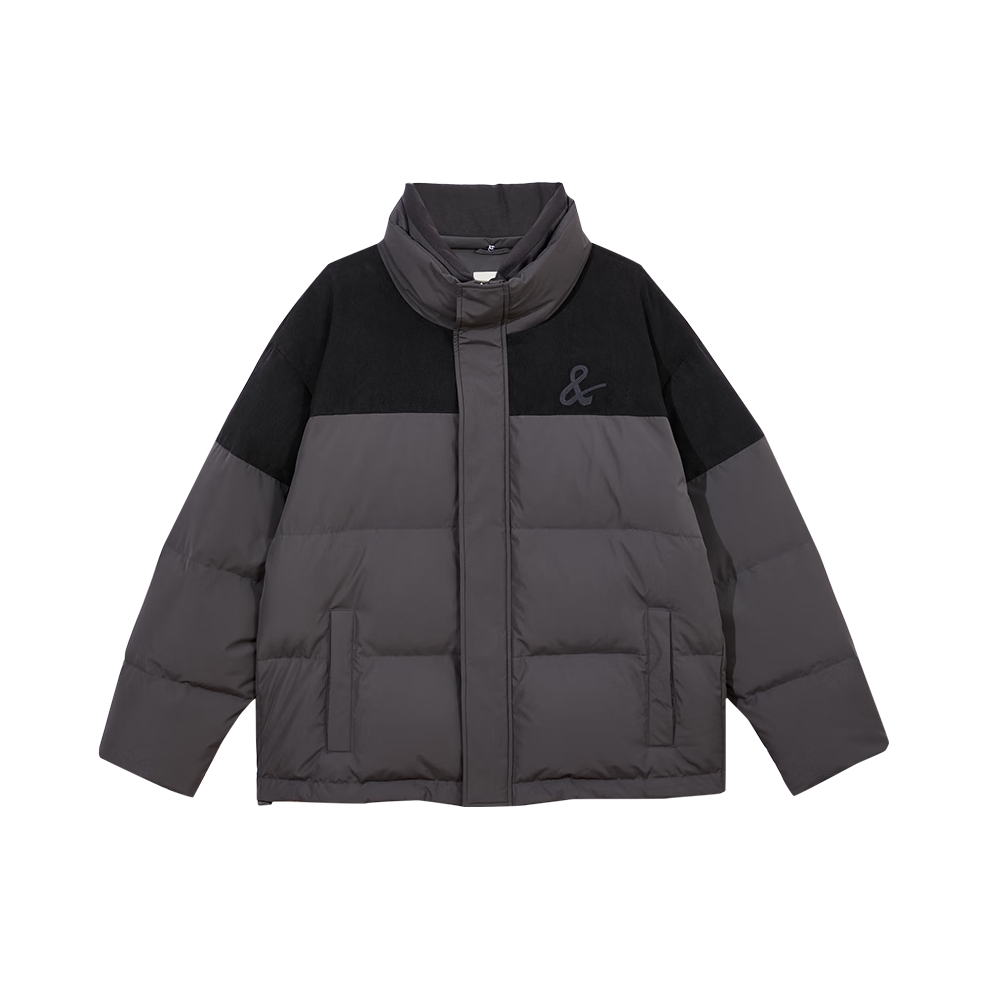 在功能配置方面,填充物为鸭绒,风格为商务,版型为宽松,领型为立领,袖长为长袖,衣长为常规,衣门襟为拉链款,厚度为适中厚度,图案为拼色,含绒量为90%~94%,适用季节为冬季。