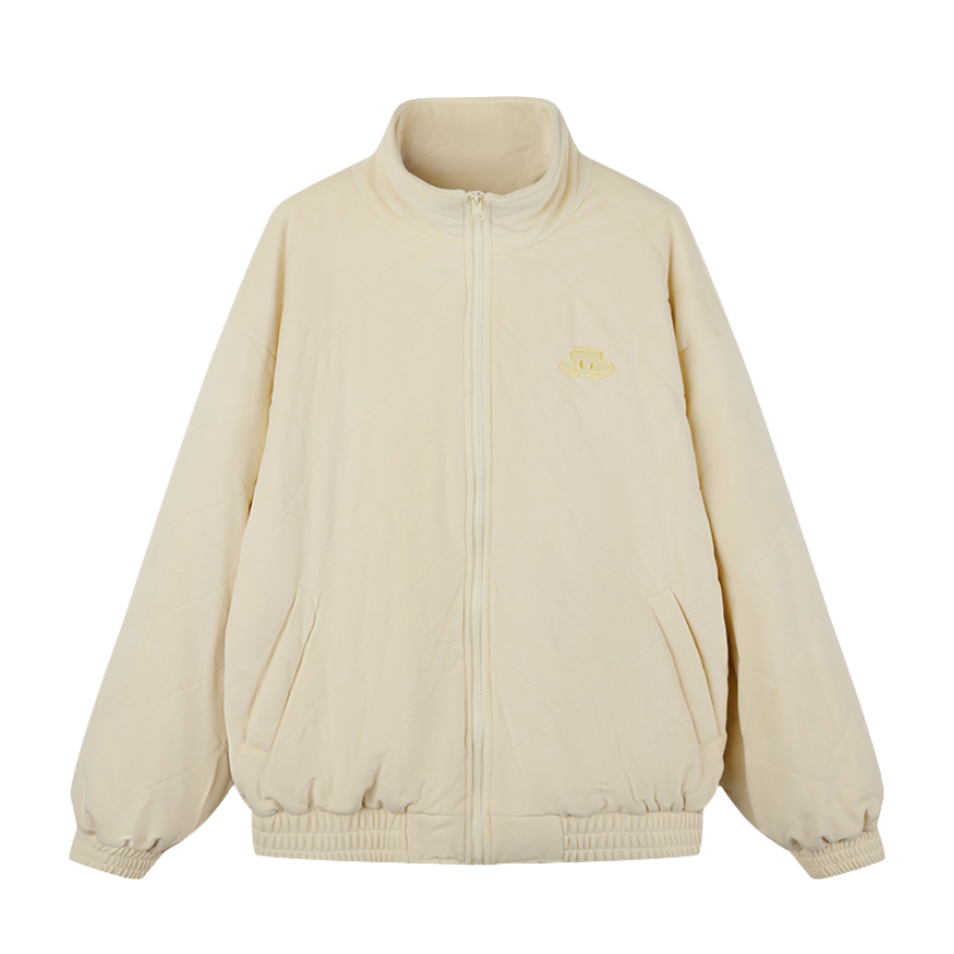 在功能配置方面,风格为大众休闲,版型为宽松,领型为立领,袖长为长袖,衣长为常规,衣门襟为拉链款,厚度为加厚,图案为纯色,肩型为落肩,适用季节为冬季。