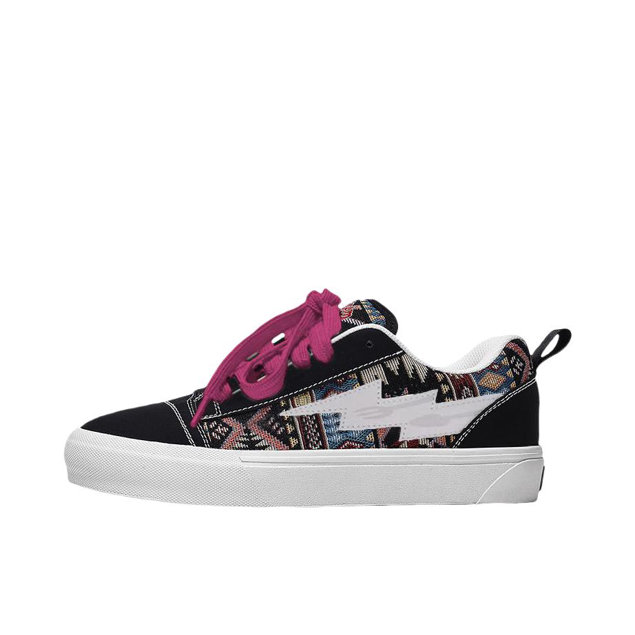 在功能配置方面,鞋面材质为织物,鞋底材料为橡胶,闭合方式为系带,流行元素为编织、图腾、素面。