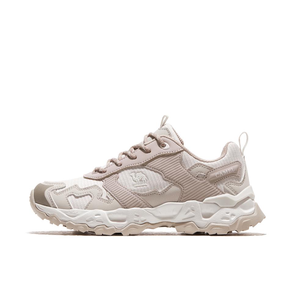 在功能配置方面,品牌为Camel/骆驼,球鞋配置为减震,鞋面材质为合成革、网布、橡塑、混合材质,运动类型为户外,鞋底材料为橡胶、TPU、复合底、MD,闭合方式为系带,鞋帮高度为低帮,材质为人造革(PU)、网布,明星同款为白鹿同款,鞋底款式为平跟,功能性为防滑。