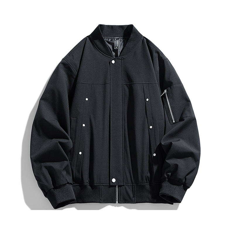 在功能配置方面,面料为聚酯纤维(涤纶),成分含量为90%-100%,风格为运动、青春流行,版型为宽松,领型为棒球领,袖长为长袖,衣长为常规,衣门襟为拉链款,厚度为适中厚度,图案为纯色,袖型为落肩袖,肩型为落肩,运动项目为户外,适用季节为冬季、秋季、春季,特色功能为防风、透气,夹克类型为飞行员夹克。