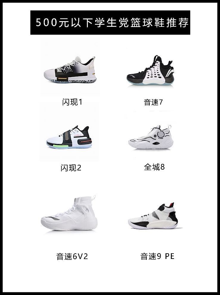 今天为大家推荐本人穿过的高性价比篮球鞋 1.闪现 1直接yyds 脚感舒适 防侧翻稳定,200上下就能拿下。 2.闪现2作为闪现系列的第二代一如既往的稳定,中高帮绑带设计使得受众更为全面。3.音速6 采用编织鞋面,耐磨鞋底,学生党必备。4.音速7,配色众多,价格200+,300+。5.全城8,拉链锁定,设计帅气厂上最亮眼的仔非你莫属。6.音速9 pe和驭帅系列共底值得信赖,球鞋定位也是学生市场