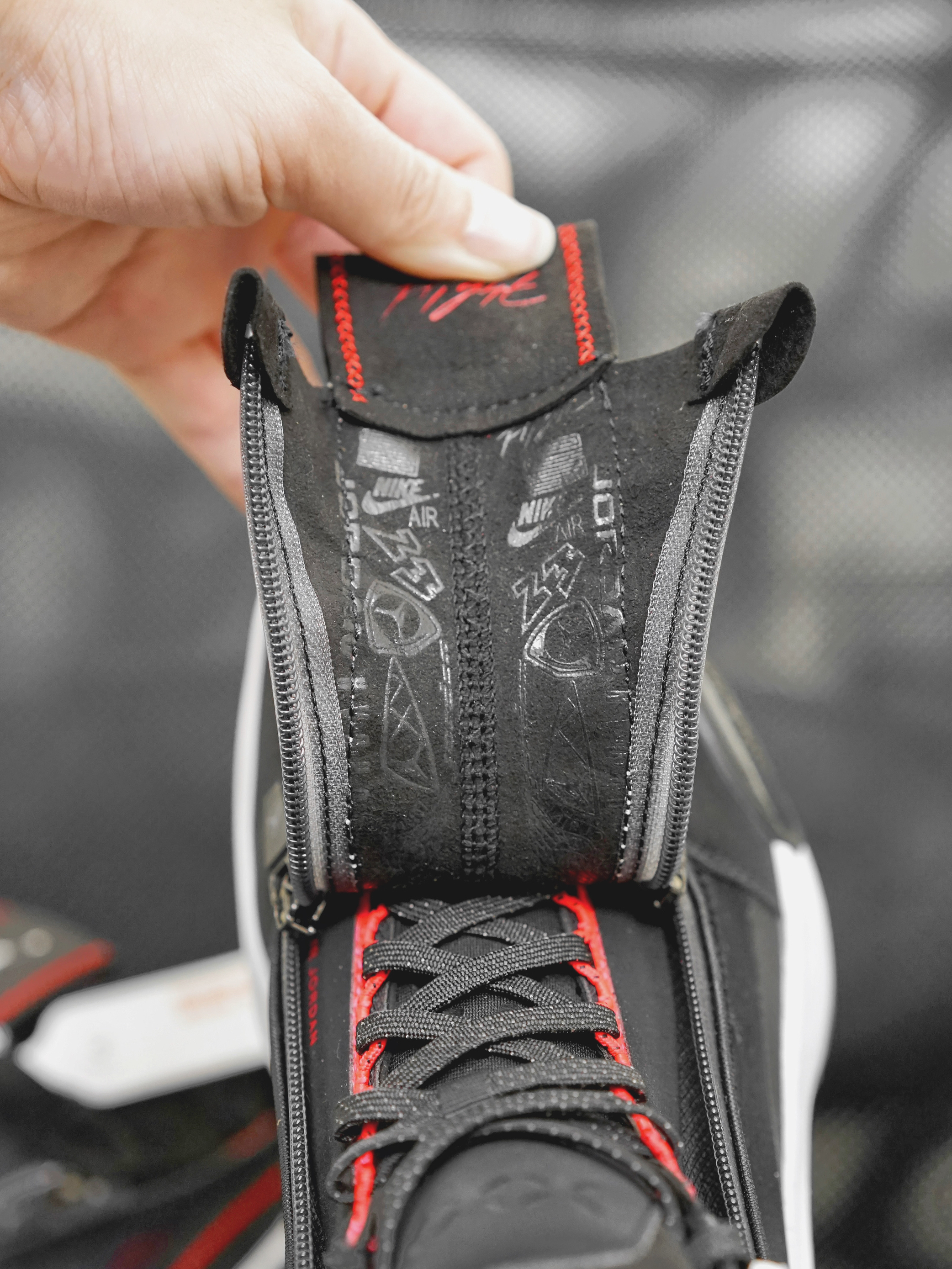 作为一双正代对于以往历代的致敬巧妙的隐藏在了双拉链防护罩的内里,历代经典的logo以立体水印的方式呈现在内侧,拉开罩面满满的惊喜感!